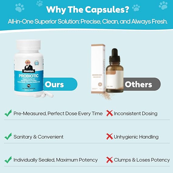 - Ideal for Dogs: We prioritize your pet's well-being and joy. Your dog will love our dogs probiotics, and they're a safe choice for your dog's long-term health and vitality. Our team is always ready to help you. If you have any questions, please contact us.