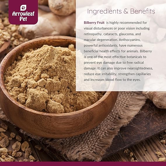 - Supports Vision Health: Arrowleaf Pet Vision Care is an herbal tincture that provides essential support for your pet's vision health. The active ingredient, Bilberry, renowned for its beneficial properties, promotes healthy vision and overall eye function, ensuring your furry companion's eyes stay in top shape.