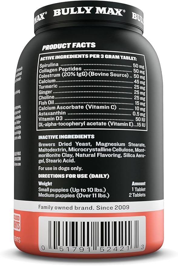 - PREMIUM NUTRITION: Supports your puppy's health and vitality with Bully Max Puppy Multivitamin Tabs. These high-quality puppy supplements are densely packed with essential nutrients, meticulously formulated to ensure they grow strong and healthy. Ideal for puppies of all breeds and sizes, these puppy vitamin tabs provide a sure way to support overall puppy wellness, laying a strong foundation for a healthy and thriving life.