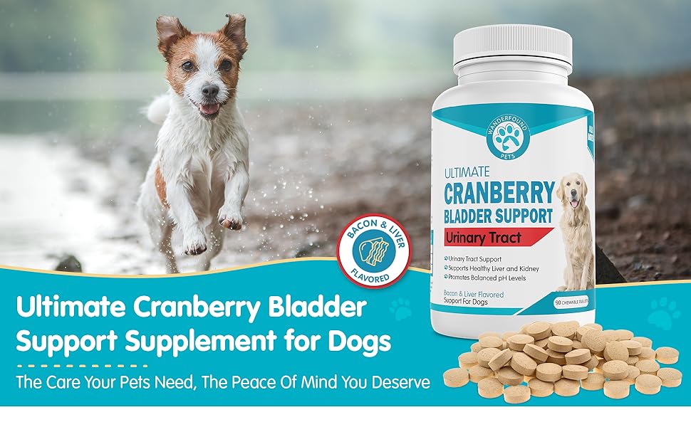 - A Formula for Every Furry Friend: Have you noticed wet spots on the bedding or floor where your dog has recently been lying down or sleeping? These can be clinical signs that your dog is experiencing bladder issues, and a cranberry dog supplement can help. Our cranberry for dogs is suitable for all breeds, ages, and sizes, offering much-needed urinary tract support. Whether you need UTI treatment for dogs or a solution for small dog UTI , we've got you covered.