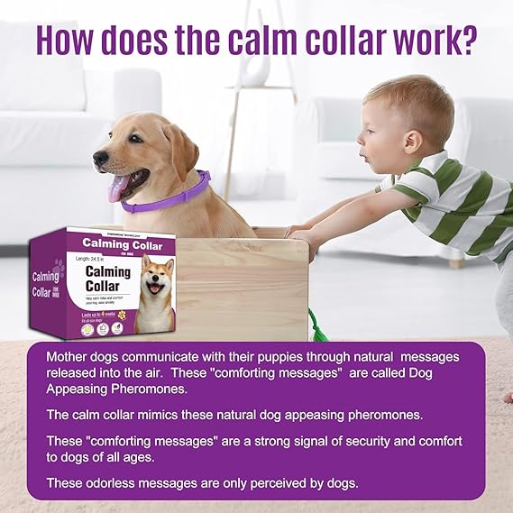 This dog calming collar adopts advanced bionic pheromone technology and is specially designed to relieve dogs' anxiety and fear in various stressful environments. Whether it's thunderstorms, fireworks, noise, seeing a veterinarian, a long journey, or unease caused by separation or a new environment, it can help dogs quickly regain their calm and sense of security. The collar contains natural soothing pheromone components that simulate the secretion of female dogs. After wearing it, it is activated by body temperature and continuously releases a gentle and calming scent, creating a familiar and safe atmosphere. This psychologically soothes the dog's emotions, reducing negative behaviors such as anxiety, tension, excessive barking, destructive biting, and restlessness at night, keeping the pet in a peaceful and comfortable state. Each collar can continuously release calming factors for up to 60 days. The four-piece set is economical and practical, suitable for multi-dog families or long-term use. Continuous replacement can ensure a stable and long-lasting soothing effect. The product is made of safe and non-toxic TPE eco-friendly material, combined with natural plant essential oils. It has undergone multiple scientific tests, is gentle and non-irritating, does no harm to dogs' skin, and is also safe and harmless to the owner. The 25-inch adjustable length design can be flexibly cut according to the neck circumference of different dog breeds, providing a comfortable wearing experience without affecting daily activities. Whether it's a newly arrived puppy or an adult dog that tends to get nervous in certain situations, this calming collar can effectively help them relieve emotions and build a sense of security. It is an ideal choice for improving pet anxiety and promoting behavioral stability, allowing your beloved dog to live at ease and freely in any environment.