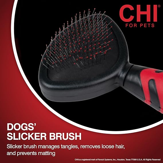 The Chi for Dogs Detangling Kit for Small Dogs features a detangling spray, a slicker brush, and a double-sided brush to remove stubborn tangles and mats, reduce shedding and leave the coat manageable, smooth and shiny. This kit includes CHI for Dogs detangling spray, CHI for Dogs Slicker Brush, and CHI for Dogs Double-Sided Brush. CHI delivers pets salon quality results right at home. Grooming products bring moisture and balance by penetrating the coat's cuticle and strengthening the fur follicles from the inside out. High quality grooming tools are designed to help restore hair's natural shine, reduce static electricity, minimize shedding, and manage tangles. CHI makes it easy for pets to luxuriate in softer, healthier and more beautiful coats.