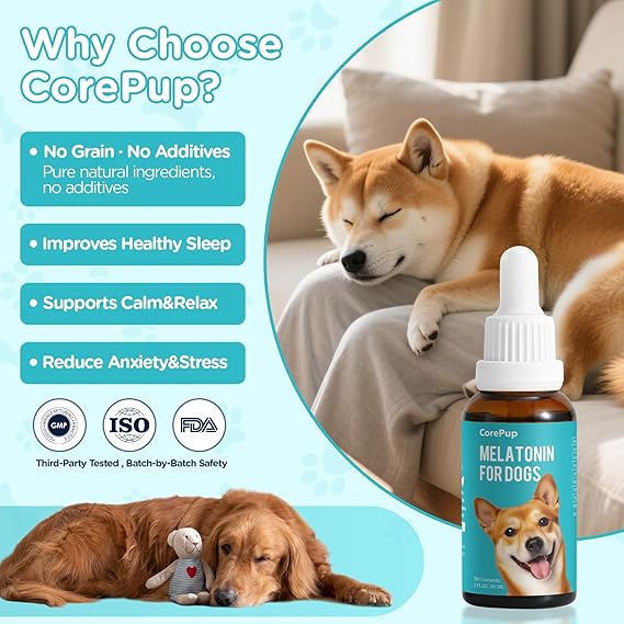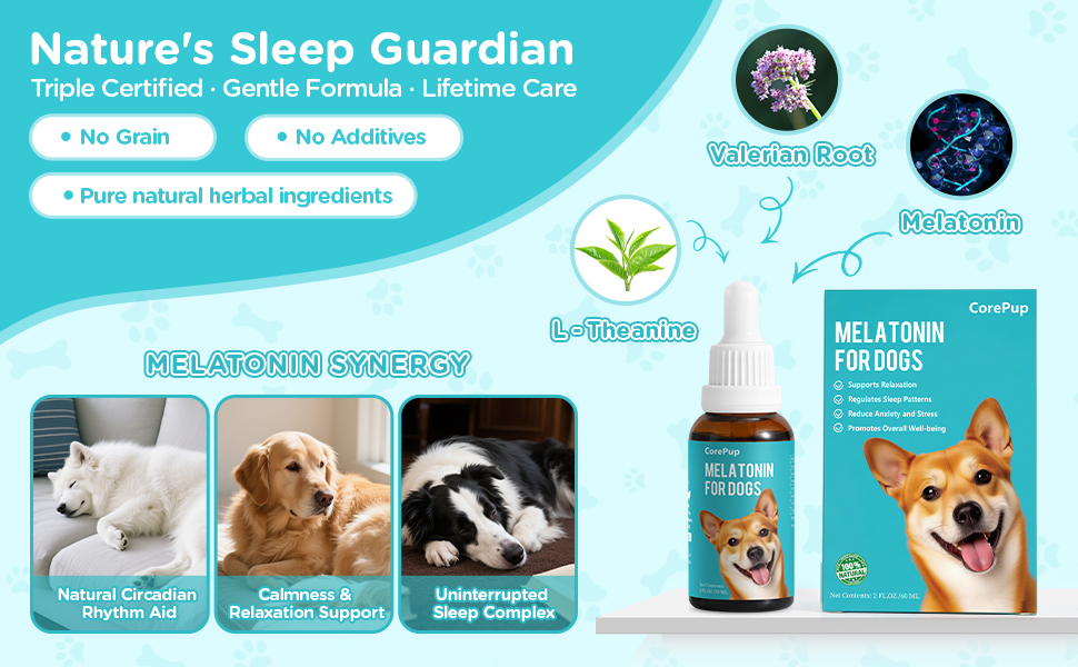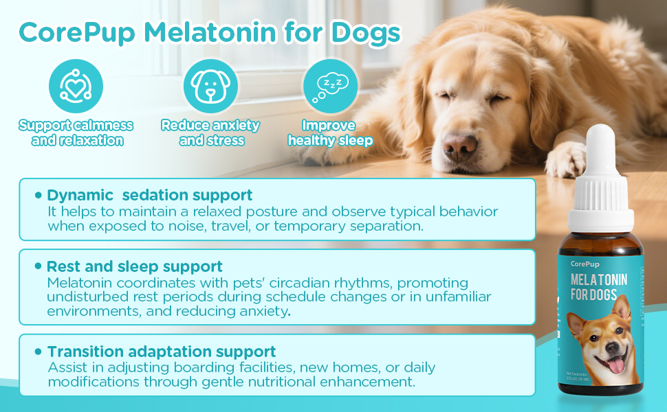 - Improve Sleep Quality:CorPup melatonin for dogs combines melatonin with L-Theanine (Suntheanine) to help reduce occasional anxiety, stress, promote calmness and support restful sleep. dog melatonin can help your dog relax, maintain a healthy mindset, fall asleep faster at night, and improve the quality of sleep