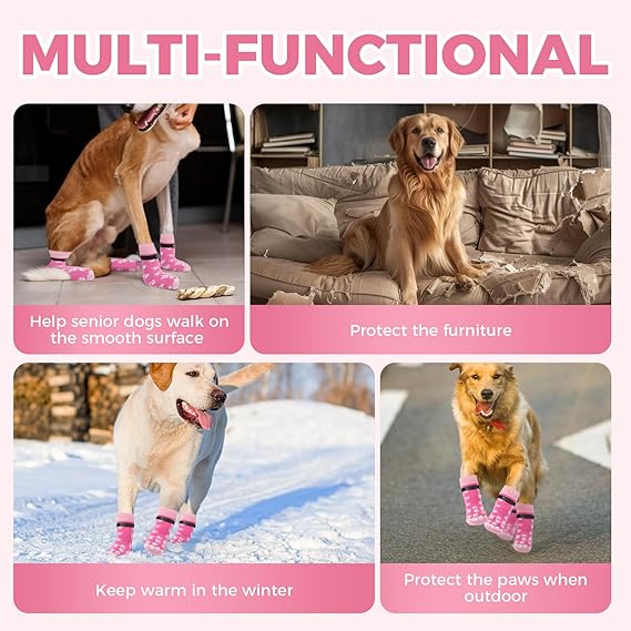 - Both sides have non-slip rubber grips: Stop the senior dogs from slipping and sliding on hardwood floor or any smooth surface. Also keep the dog paw warm when you take the dogs walk outside