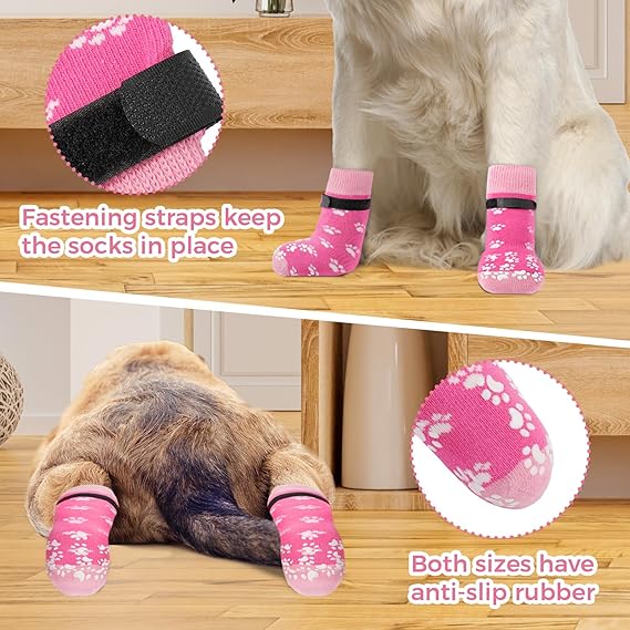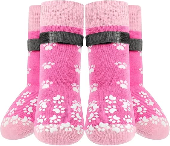 Non-Slip Dog Socks Prevent Licking Paws,Socks for Senior Dogs Walk on Hardwood Floor,Dog Grippers with Strong Traction,Dog Essentials,Pink 2 Pairs,M