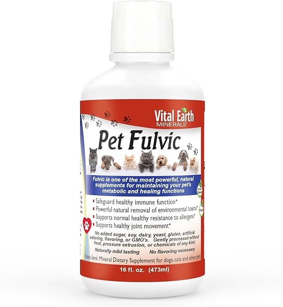 Vital Earth Minerals Pet Fulvic - 70+ Trace Minerals for Pet Health, Joint Supplement, Allergy Relief for Cats, Dogs & Farm Animals, 16 Oz