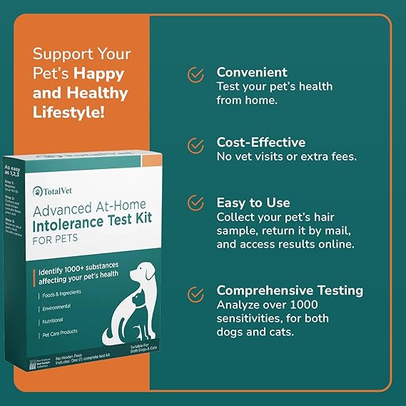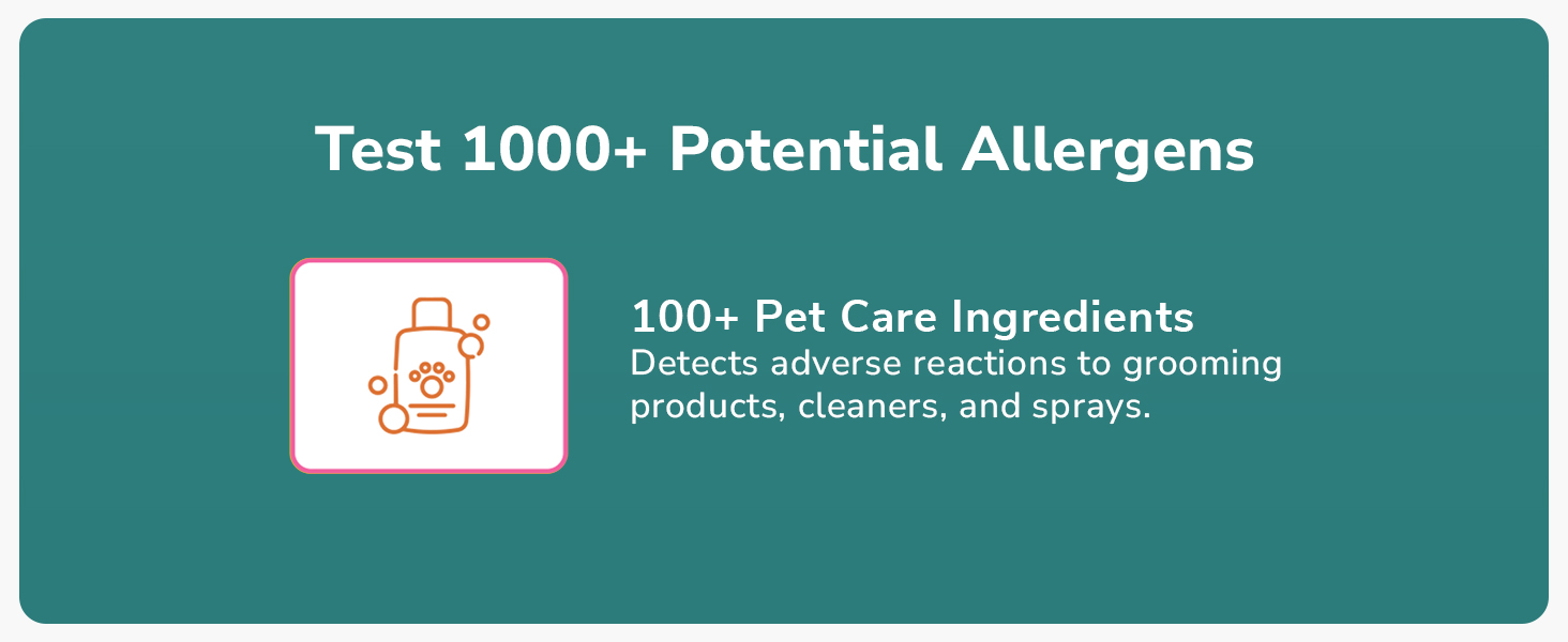 - Tests for 350+ Allergens - Comprehensive screening for common irritants including foods (chicken, beef, grains), environmental triggers (grass, pollen, mold), and household items (detergents, fabrics, cleaning products).