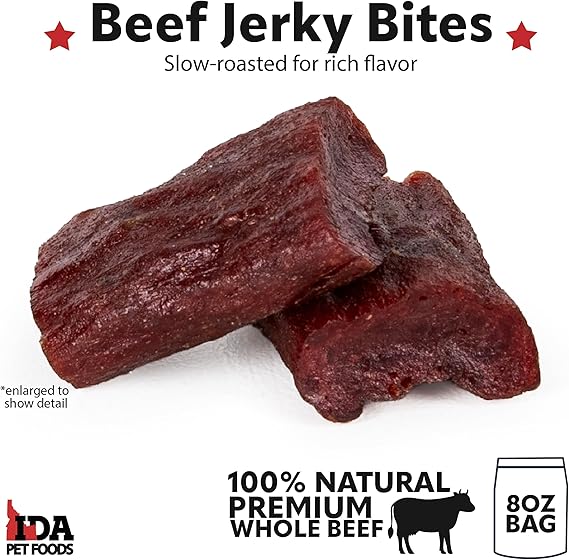 Beef Jerky Bites 8oz - Natural Meat Dog Treats & Chews, 100% Beef Protein, No Fillers or Byproducts, Whole Muscle Meat, Ideal for Puppies to Seniors