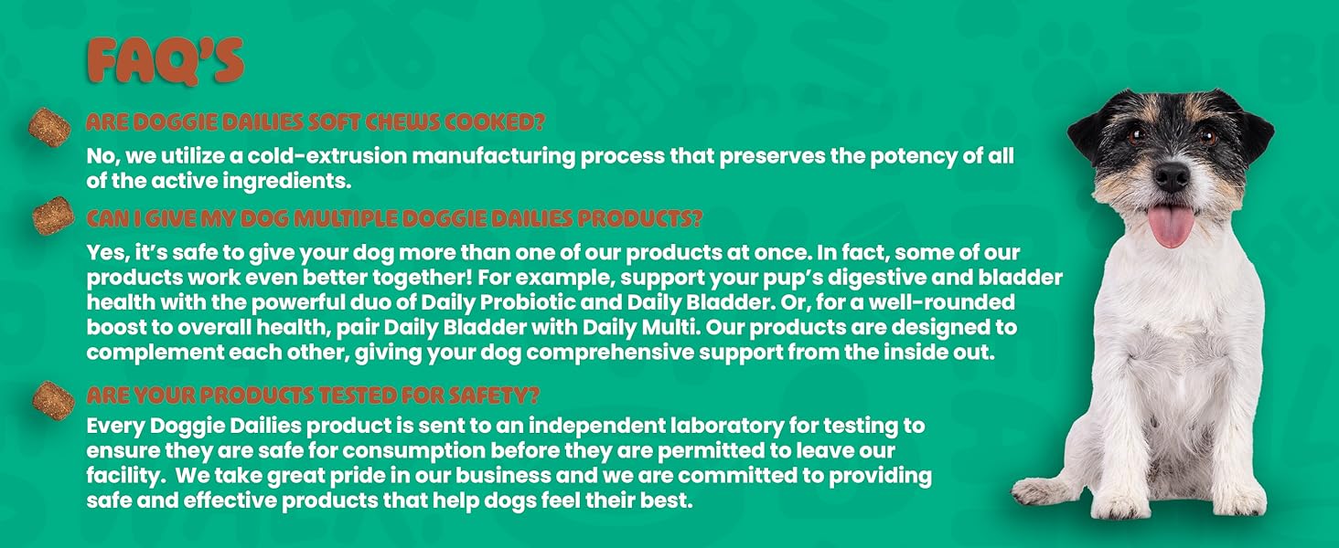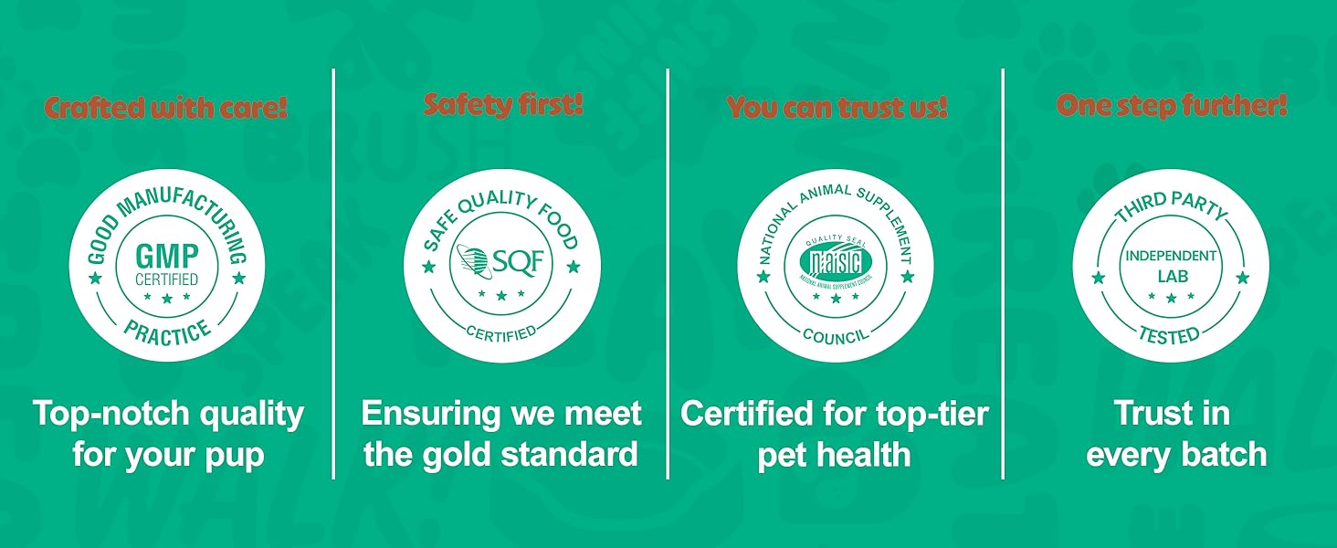 - Our U.S. facility is GMP compliant and Level 3 SQF certified. Every batch of Doggie Dailies is tested by an independent lab and carries the National Animal Supplement Council Seal of Quality