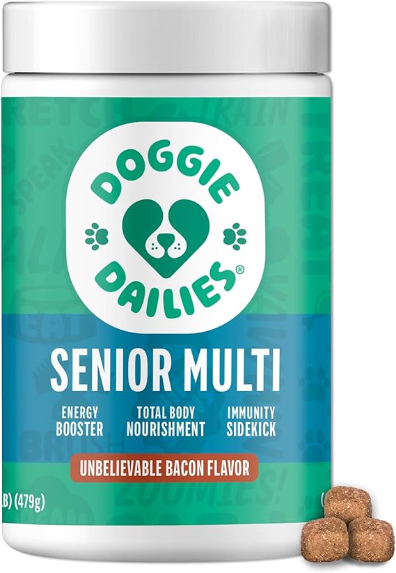 Doggie Dailies Senior Essentials Multivitamin for Dogs Soft Chews | Advanced Dog Multivitamin | Nutritional Support for Joints, Skin & Coat, Digestion, and the Immune System | Bacon Flavor | 120 Count