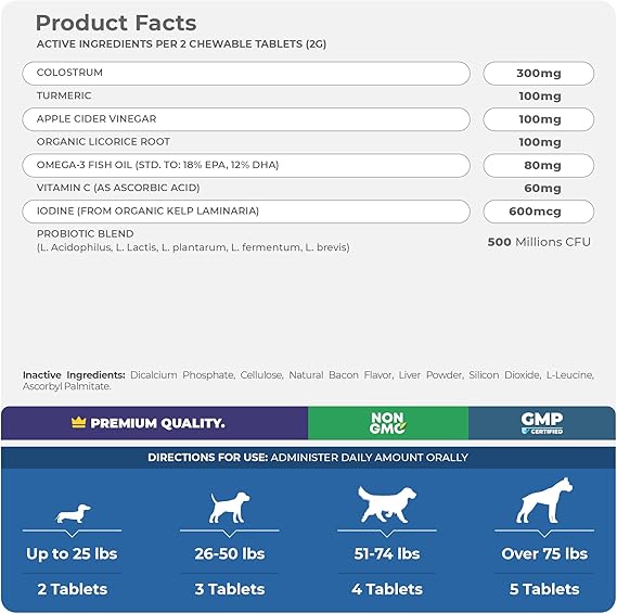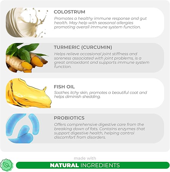 Dog Allergy Relief - Itching Skin Support - Anti-Itch Skin and Coat Supplement, with Probiotics, Salmon Oil, Colostrum, Quercetin, Turmeric - Dog Allergy Chews for Seasonal Allergies, Immunity Support