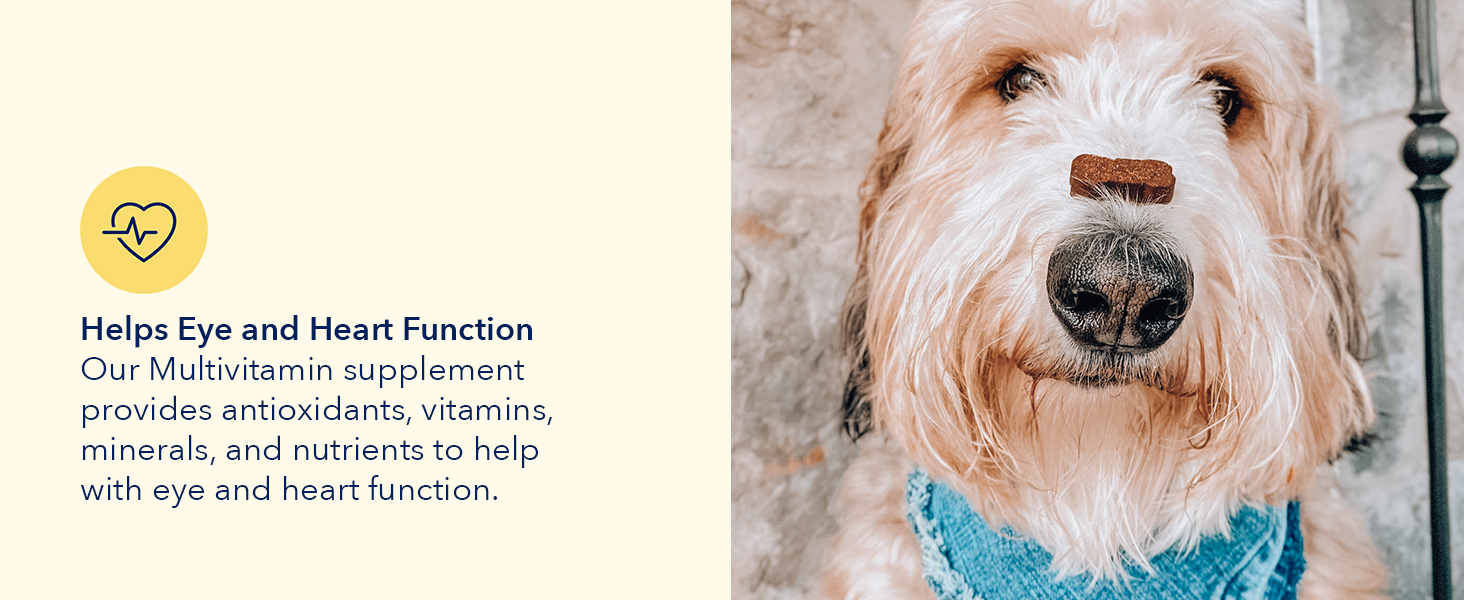 - Multivitamin with Multi Benefits - Support joint function and connective tissue, Help dogs achieve a soft, silky, shiny, and healthy coat, Aid in digestion and absorption of essential nutrients, Support the immune system, Assist with eye and heart function.