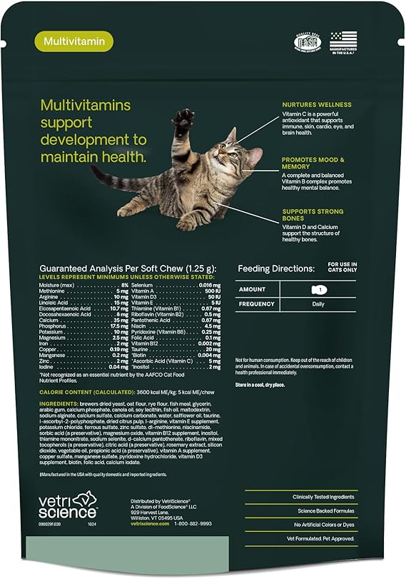 Give your dog the support they need with Senior 27 Active Health (new name, same great Canine Plus Senior Multivitamin). These multivitamin chews are vet-formulated for daily health and vitality and packed with 27 essential nutrients, including vitamins, minerals, antioxidants, and fatty acids, to help balance your senior dog’s diet and fill nutritional gaps not covered by standard commercial dog food. Ideal for senior dogs of all breeds and sizes, this multivitamin for senior dogs supports heart, brain, immune, and joint health, while promoting healthy digestion, skin, and energy levels. It's perfect for dogs on homemade or raw diets, ensuring they receive the full spectrum of nutrients needed for optimal aging. Ingredients like arginine aid immune function and detox, while Omega-3 and -6 fatty acids from fish oil support brain, eye, and joint health. Antioxidants like vitamins A, C, and E protect against free radicals, while B vitamins support cellular health, mood, and energy. Designed for senior and geriatric dogs, these veggie -flavored chews are gentle on sensitive stomachs and easy to administer. Give your dog a daily boost with this comprehensive senior dog multivitamin to keep them happy, healthy, and thriving in their golden years. Our dog and cat supplements are certified by the National Animal Supplement Council (NASC), routinely undergo third-party testing, and contain no hidden ingredients, artificial flavors, synthetic colors or preservatives.