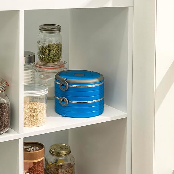 Healthy Human Travel Pet Bento Bowls - Human-Grade Stainless Steel & BPA-Free, Leak-Proof Water & Food Container Set for Dogs & Cats, 2-Pack Interlocking Bowls, Includes Spare Clips & Handle (Blue)