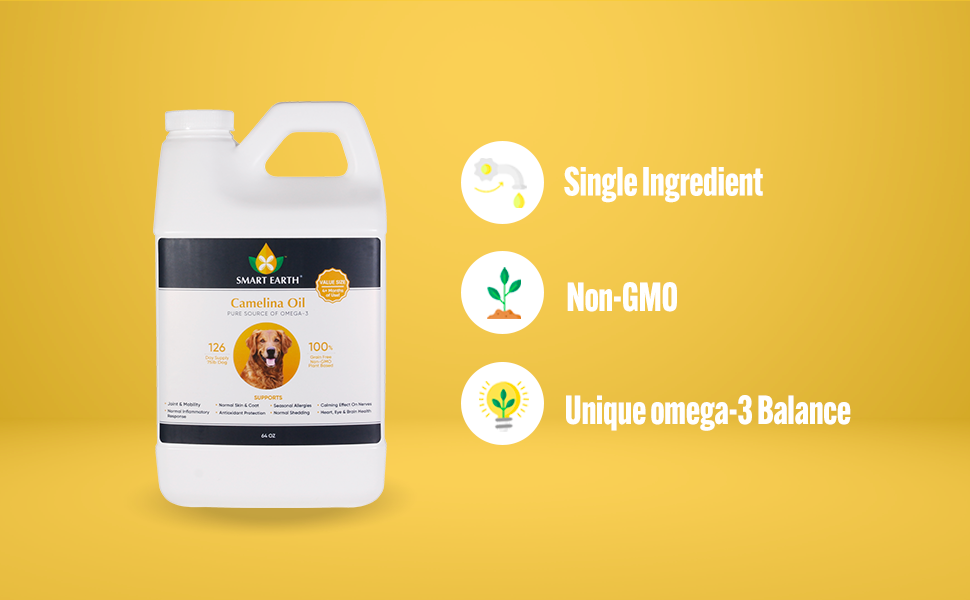 Smart Earth Camelina Oil for Dogs - Omega 3, 6, 9 Supplement for Healthy Skin, Shiny Coat & Flexible Joints - Dog Joint Supplement - Natural Canine Wellness - Omega 3 for Dogs (Pump Included - 64oz)
