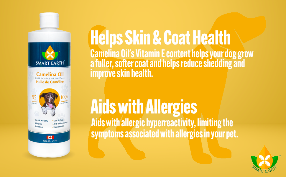 - Dog Skin & Coat Supplement: Elevate your dog's overall health with 100% pure camelina oil that is made in Canada; Enriched with naturally occuring Vitamin E & Omega 3, 6, 9 that improve skin health & helps reduce shedding; The perfect alternative to flaxseed oil
