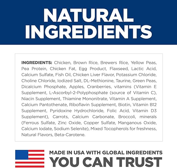 Just because your cat is getting older, it doesn't mean they're out of the game. Hill's Science Diet Adult 7 No Corn, Wheat, Soy dry cat food supports graceful aging in cats, providing a synergistic ingredient blend that supports the energy & activity level in older felines. This mature cat food made with high quality ingredients provides cats 7 years and older with taurine: an essential component for heart health. Balanced minerals promote bladder and kidney health, while vitamin E, omega-3 and omega-6 fatty acids support healthy skin and fur. Easy-to-digest ingredients help aging cats get the nutrition they need.