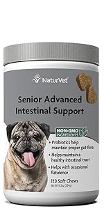 - VITAMIN-ENHANCED DOG SUPPLEMENTS FOR ANXIETY: Ensure that your canine companion receives the nutrients he needs and wheat-free soft chews for dogs that act as a calming aid when stocking up on these NaturVet Senior Advanced Calming Aid Dog Supplements.