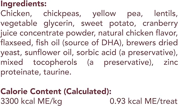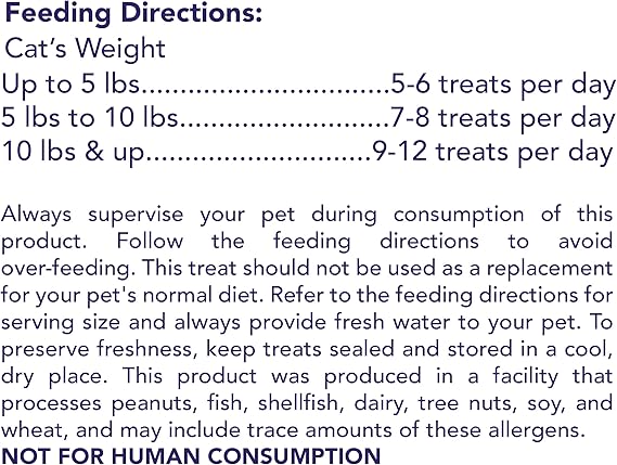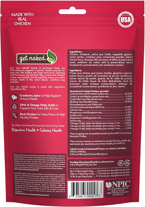 Get Naked's Cat Crunchy Treats are the smart way to treat your cat each day. Our Calming Health Formula contains functional ingredients like chamomile & tryptophan to help your cat maintain calm behavior, along with supportive taurine & lysine for overall good health, plus DHA and Omegas to help keep their skin and coat healthy. These tasty crunchy cat treats help keep your kitty's teeth clean while chewing and give them purr-fectly fresh breath. And with less than 1 KCAL per cat treat, you won't feel guilty giving them multiple rewards throughout the day.