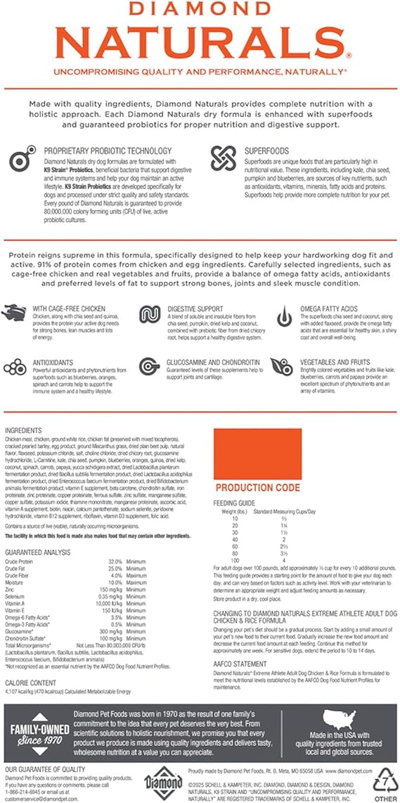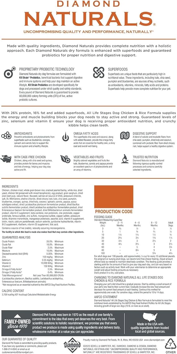 Diamond Naturals Adult Dry Dog Food Lamb Meal and Rice Formula Made with High Quality Lamb Protein, Probiotics and Essential Nutrients to Support Balanced and Overall Health 40Lb