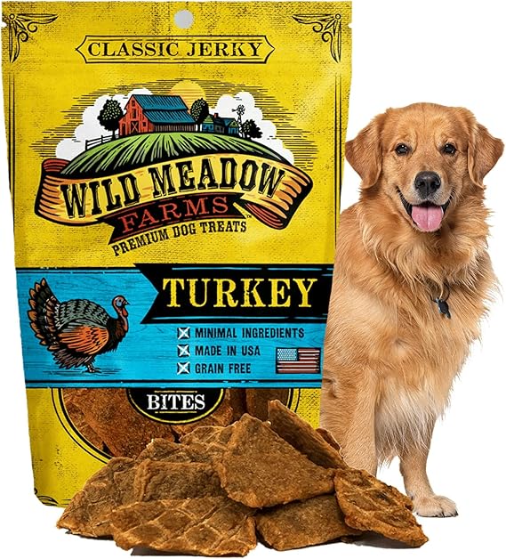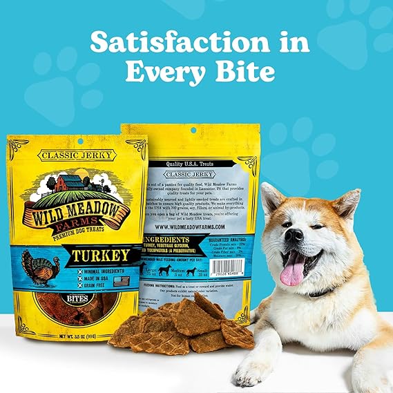 Wild Meadow Farms - Classic Turkey Bites, Soft Jerky Treats for Dogs, Grain-Free & All-Natural, Ideal for Training, Portioning, and High-Value Rewards for All Breeds & Ages - 3.5 Ounce Pouch