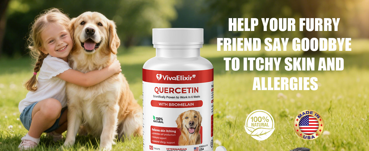 Quercetin & Bromelain Tablets for Dogs — for Skin Allergy, Atopic Dermatitis, Ear Infection Treatment & Joint Inflammation — Immune & Anti-Inflammatory Support — Vet-Formulated