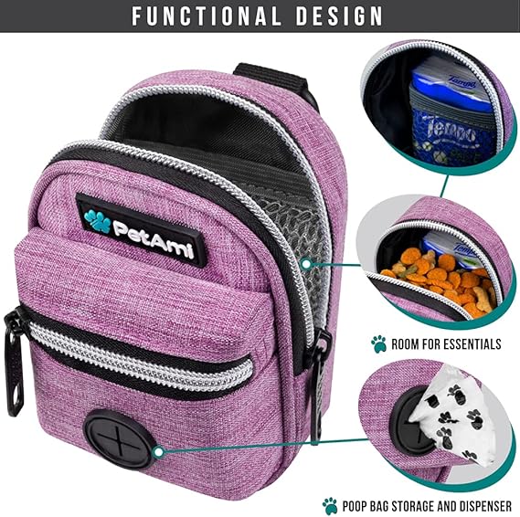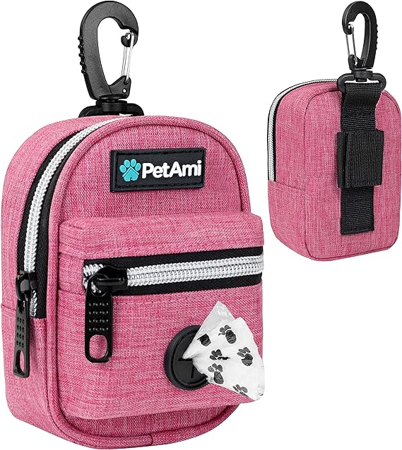 PetAmi Dog Poop Bag Holder For Leash, Dog Pet Waste Bag Dispenser For Poop With Clip For Doggie Puppy Walking Accessories Travel Camping, Dog Treat Pouch Supplies Must Have With Doggy Bag Roll, Pink