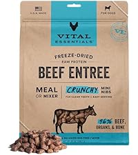 When it comes to feeding your dog a raw diet, superior protein provides superior benefits. Vital Essentials Freeze Dried Raw Beef Dog Food Patties are packed with premium butcher cut raw protein, responsibly sourced and humanely harvested, to support your dog's overall health and wellness. Whole animal protein from muscle, organs, and bone marrow delivers lean, strong muscles and energy, digestive health, and clean teeth and gums in every bowl, keeping your pet looking and feeling their best. With Vital Essentials, you can feed raw with confidence and ease, and give your dog the health and vitality they deserve. CALORIE CONTENT: ME = 4807 kcal/kg | ME = 340 kcal/patty. GUARANTEED ANALYSIS: Crude Fiber, max: 8% | Crude Fat, min: 32% | Crude Protein, min: 40% | Moisture, max: 8%. PREPARATION & STORAGE: Feed freeze-dried patties as is or rehydrate with warm water. Simply crumble, add water, mix and serve for a moisture rich complete and balanced meal that can be served as is or topped over your pet's current dry food. Always provide access to clean, fresh water. Keep freeze-dried products sealed and stored in a cool, dry dark place. Keep out of reach of young children and pets. Not for human consumption. Best if fed within 30 days after opening.