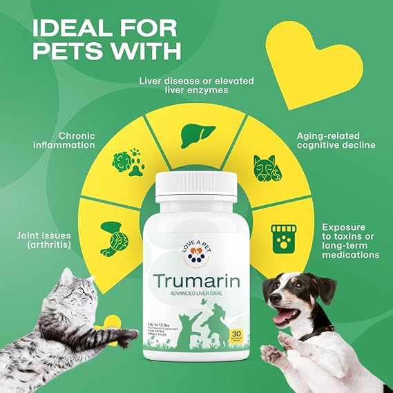 - Natural Detox & Toxin Defense - Rich in antioxidants, Trumarin helps support your pet’s natural ability to flush harmful toxins from the liver while shielding it from everyday pollutants, medications, and environmental stress—keeping your pet energized and thriving.