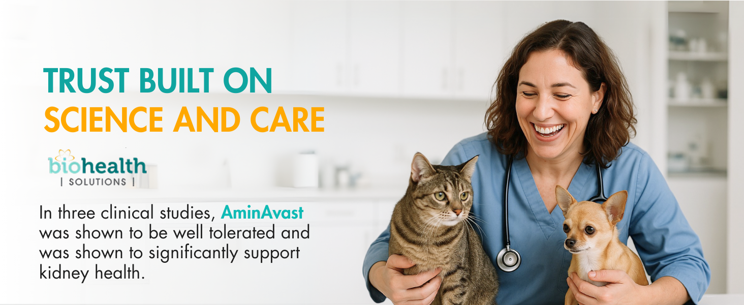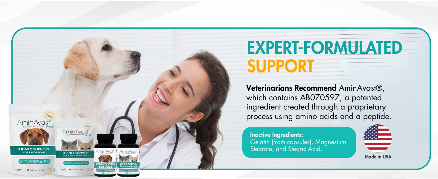 - Our proprietary blend of amino acids and a peptide can help promote and support healthy, natural kidney and renal function in cats and dogs. No side effects have been reported in cats that have been using AminAvast for both short-term and long-term use.