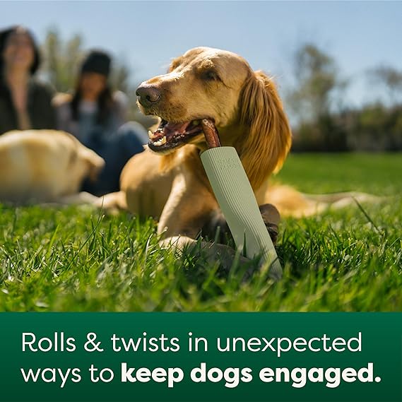 - KEEP THEM BUSY: Our enrichment toy's ribbed, ergonomic design allows dogs to grip and hold it like a bone between their front paws. This unique shape helps ease boredom and promote play and behavioral development.