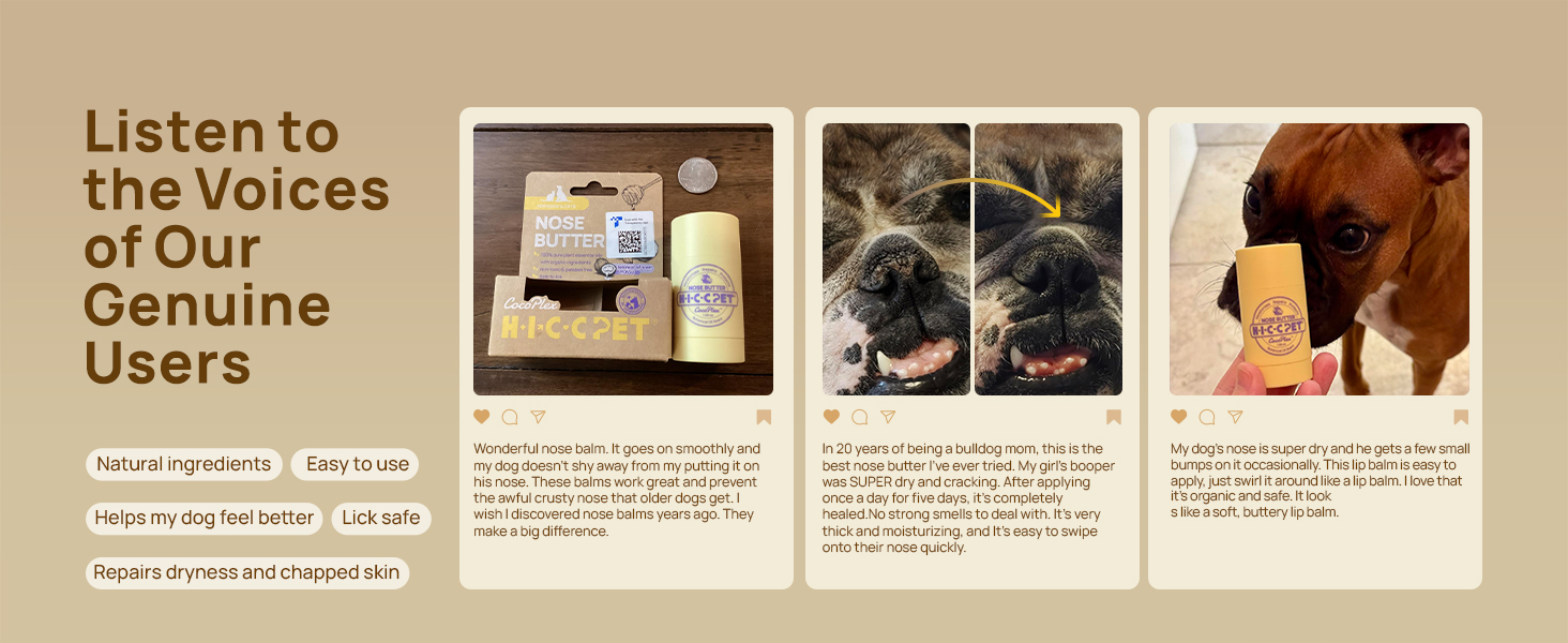 - All-Natural & Lick Safe: HICC Pet nose & wrinkle blam made of 10 natural plant extracts, mild and non-irritating, can be used on sensitive skin. (Fermented coconut oil, olive oil, avocado oil, manuka honey, plant squalane, sea buckthorn fruit oil, babassu seed oil, turmeric root oil, sunflower seed oil, and beeswax.)