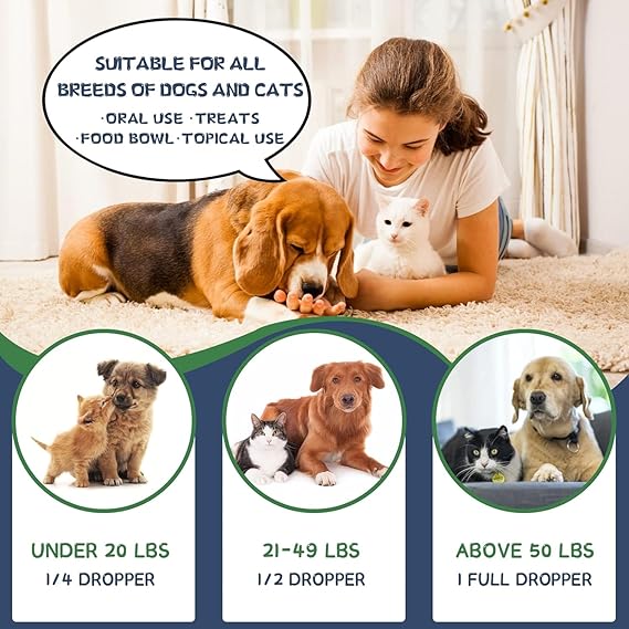 - CONVENIENT AND EASY TO USE: Our Omega 3 6 9 Pet Oil comes in a convenient liquid form that is easy to control dosage and mix with your pet's food for dogs and cats of all sizes. Making it easy and convenient for pets to take nutritional supplements.