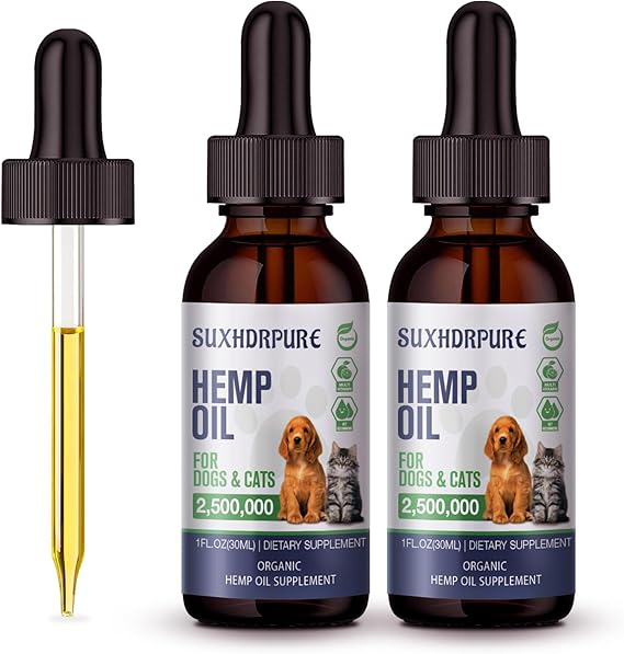 0rganic Hemp Oil for Dogs and Cats - Helps with Anxiety Pain Stress Sleep Arthritis Seizures Relief - Support Hip Joint HealthSupport - Hemp Oil Drops Calming Treats 2-Pack