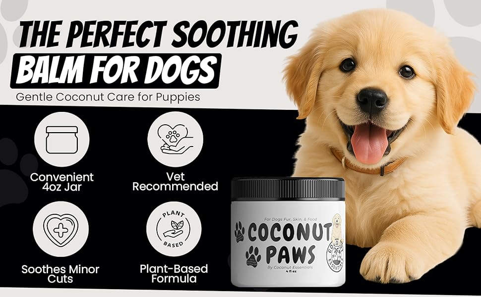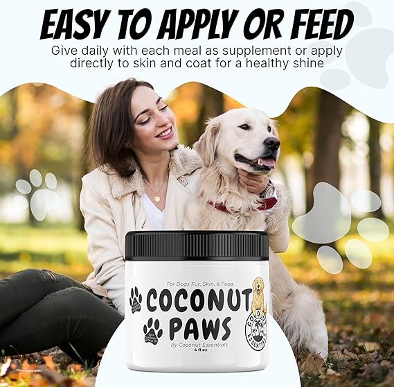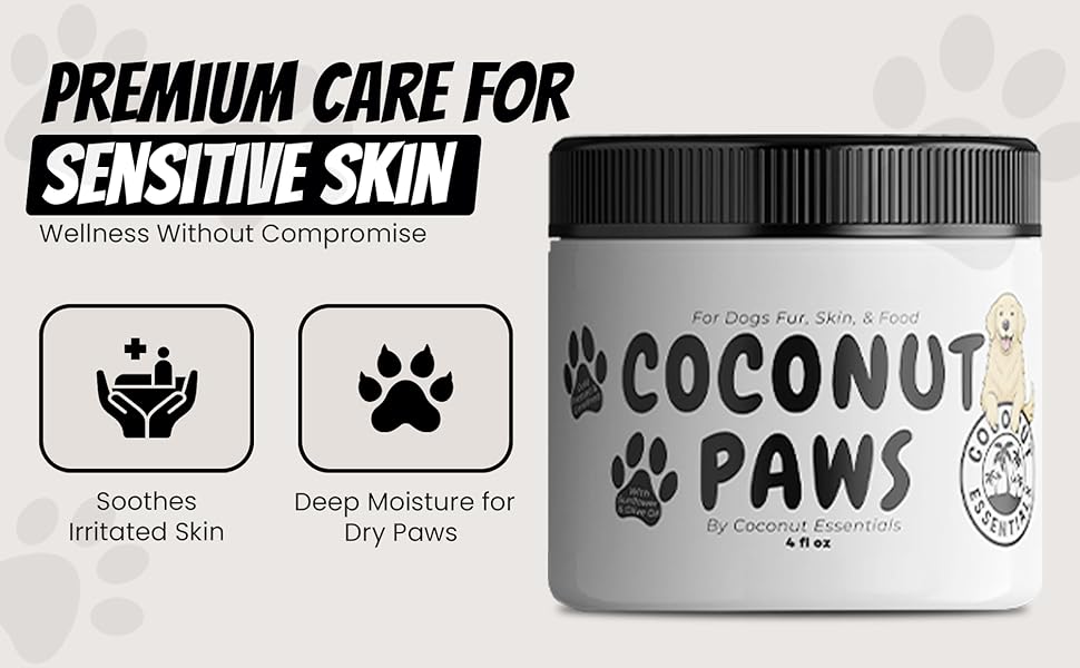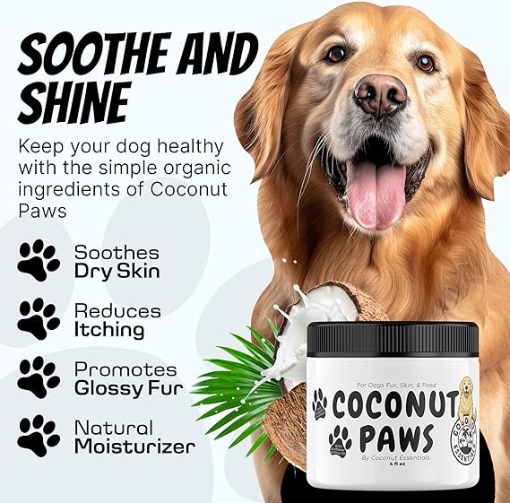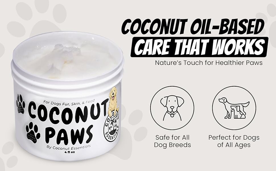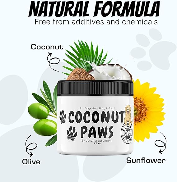 Coconut Essentials Coconut Paws - Dog Skin and Coat, Itching Relief, Hot Spot Treatment, Hair Loss, Cracked Paws, Elbows, Dry Nose | w/Organic Coconut Oil, Olive & Sunflower Oils | Vet Recommended 4oz