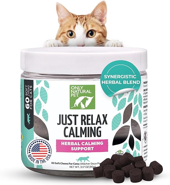 Only Natural Pet Just Relax Herbal Calming Support Soft Chews for Cats - Behavioral Support & Promotes Relaxation & Comfort - Ideal for Travel, Vet Visits & Stress Situation - 60 Soft Chews