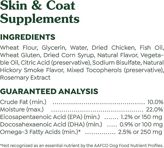 Greenies Supplements Dog Skin and Coat Supplements with Fish Oil & Omega 3 Fatty Acids, Chicken Flavor, 80-Count Tub, Pack of 2