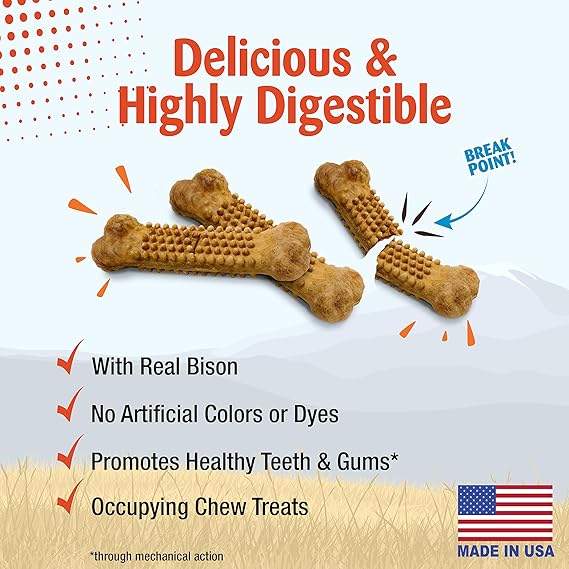 Nylabone Nubz Wild Natural Dog Chew Treats, Bison Flavor, Small Dogs Up to 30 lbs - Made in USA (12 Count)
