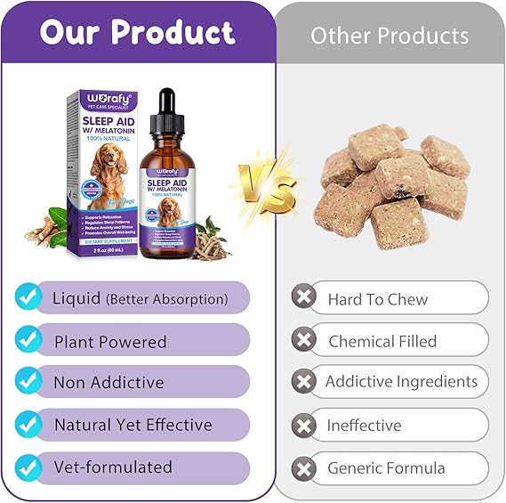 - Supports Anxiety & Stress Relief - Our sleep aid drops for dog can help dogs reduce pain and discomfort in dogs who have a difficult time with anxiety, phobia and nervousness relating to noise or disorientation, including separation anxiety.
