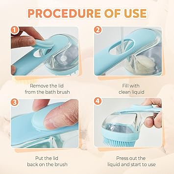 - Built-In Soap Dispenser: This clever pet bath brush with soap dispenser makes washing quick and easy. Just fill it with your favorite dog shampoo, squeeze gently, and enjoy a rich lather that cleans thoroughly and rinses easily.