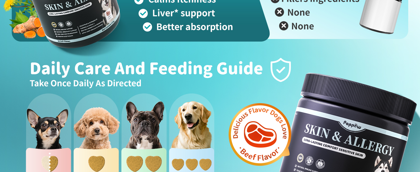 - Seasonal Skin Sensitivity Support: Our dog allergy relief products are designed to promote* long-lasting comfort for dogs with sensitive skin. And dog skin care supplement contains a potent combination of turmeric, bee pollen, and dandelion root to soothe skin-related issues associated with seasonal allergies. This blend helps to maintain normal skin health and comfort