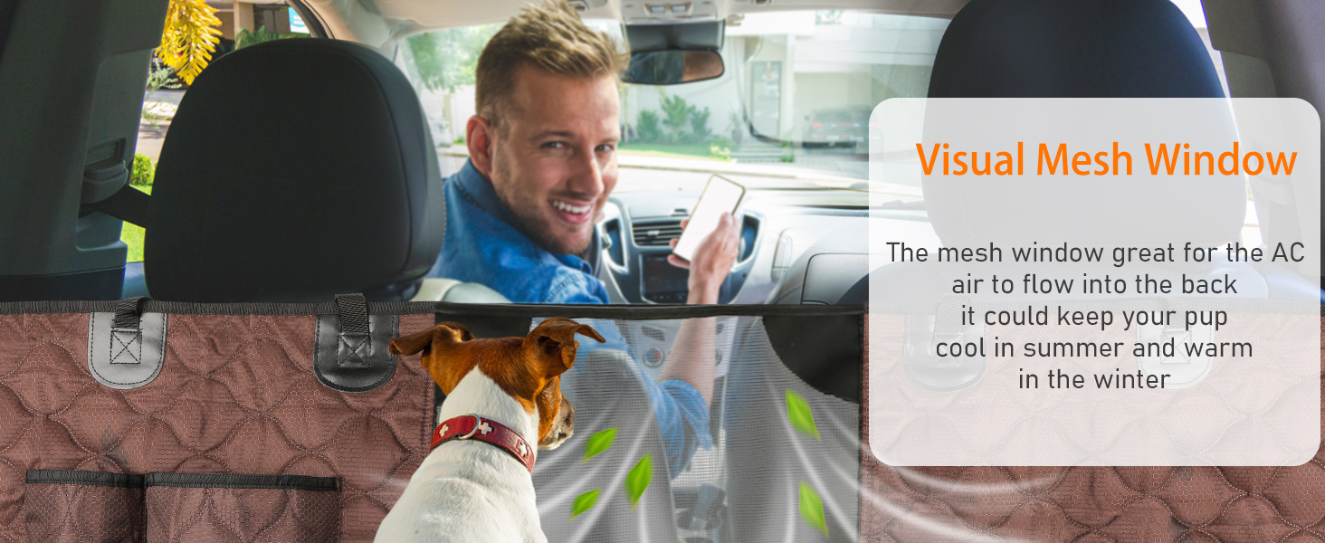 - Visible Window: Peticon Dog seat cover with mesh window supplies your dog a better air circulation in Summer and Winter. Ensure your dog feels cool and warm. The visible window allows your dog to clearly see you, helps your dog reduce anxiety and remain calm when traveling.