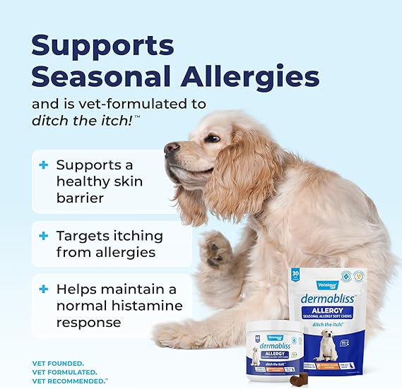 - VETERINARIAN FORMULATED & RECOMMENDED - Use with our Dermabliss Anti-Itch & Allergy Relief Shampoo; and with our full line of Dermabliss Allergy Supplements and dermatologic products for complete itchy dog relief