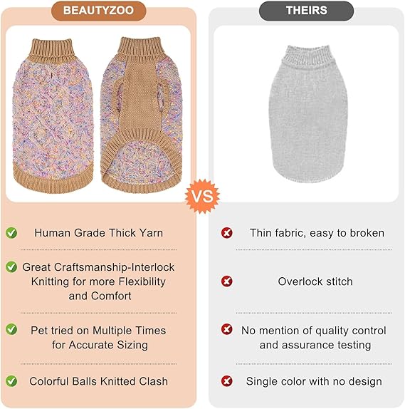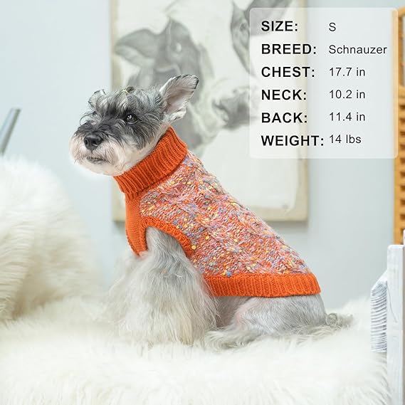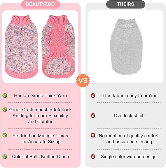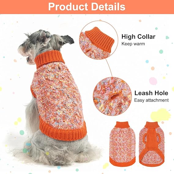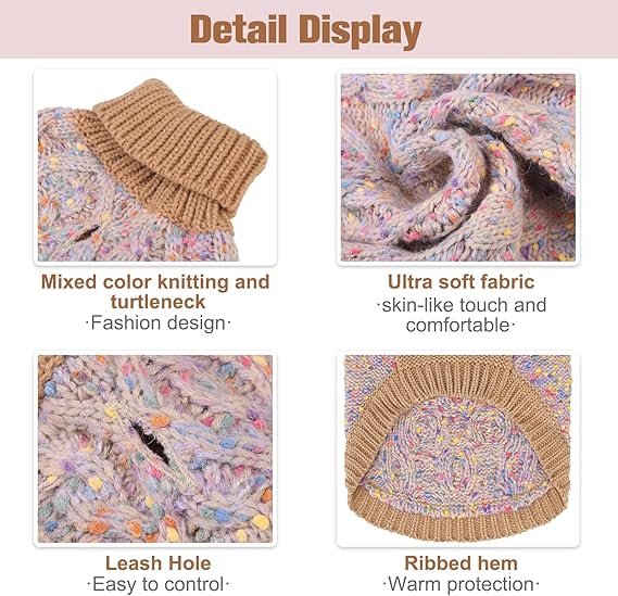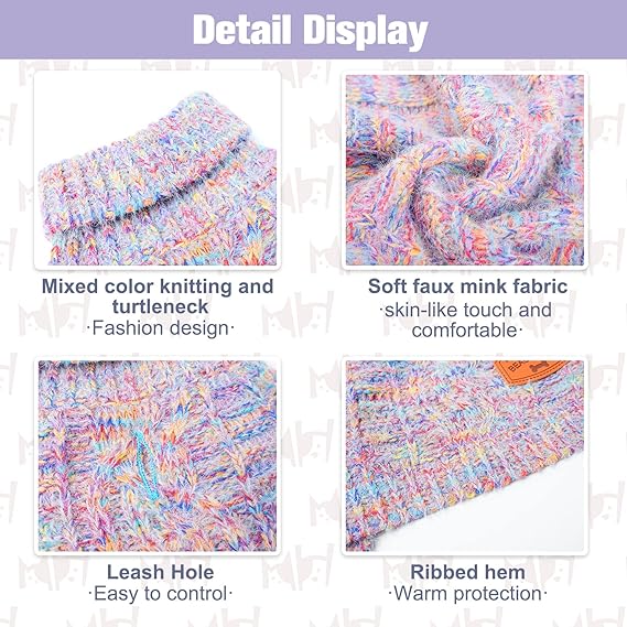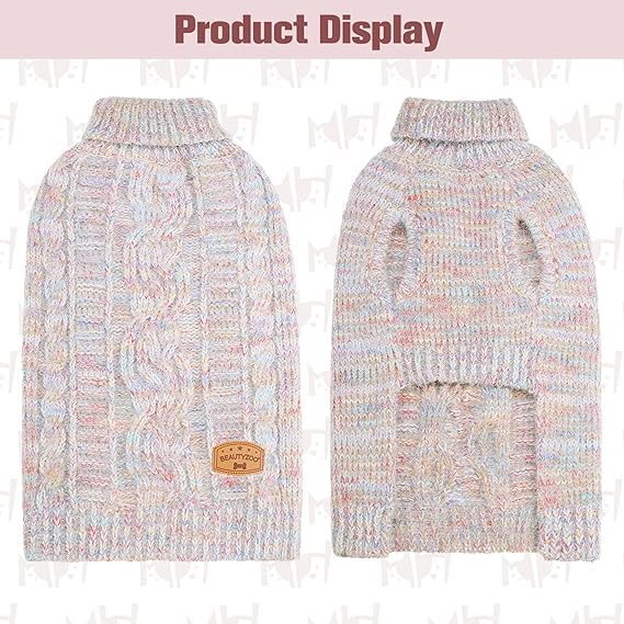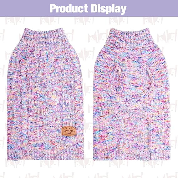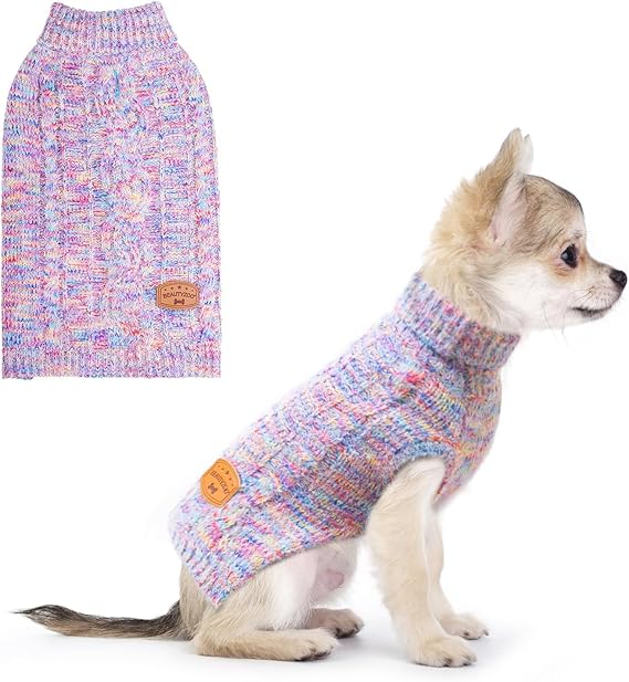 BEAUTYZOO Small Dog Sweater -Turtleneck Pullover Classic Cable Knit Fuzzy Winter Coat Dog Cold Weather Clothes for Small Medium Dogs Puppy Girl Boys(Rainbow Pink, M/L)