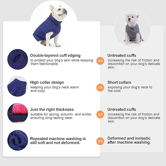 Pet sweater is cute to be used as a daily wear in the cold weather to keep your pet warm. Dogs can wear the sweater when they are staying at home, having a trip or a warm and other outdoor activities. As well as used as pyjamas, non-pilling.
