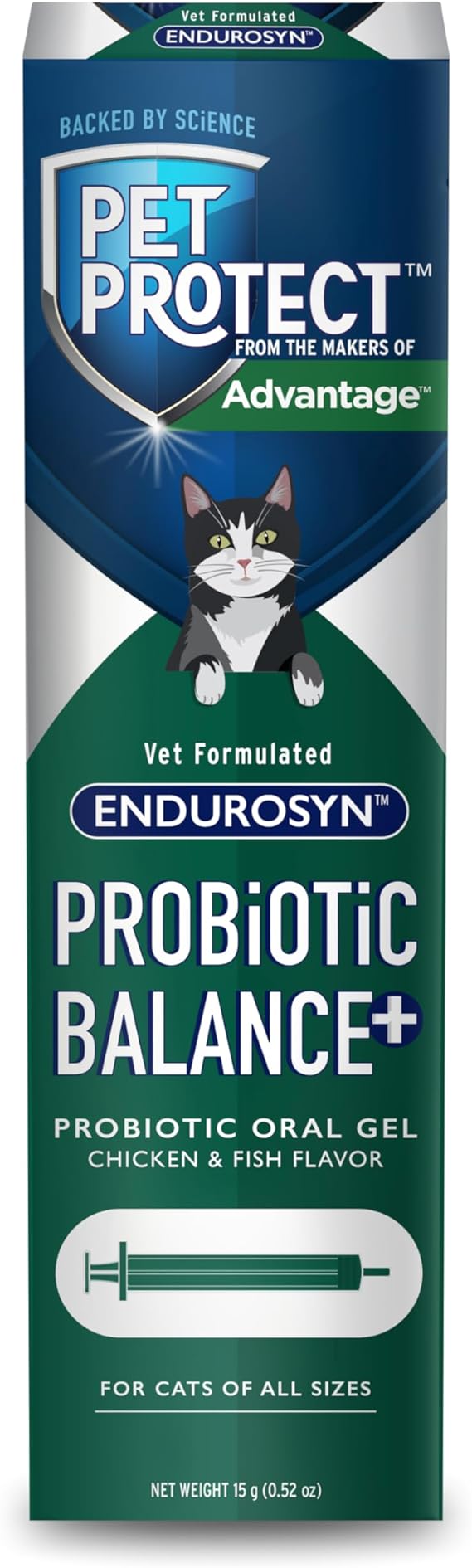 Pet Protect Cat Probiotic Balance+ Oral Gel, Vet-Formulated Endurosyn, Prebiotics & Probiotics for Cats, 3-Day Supply, Chicken & Fish Flavor (15g)