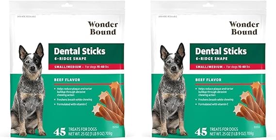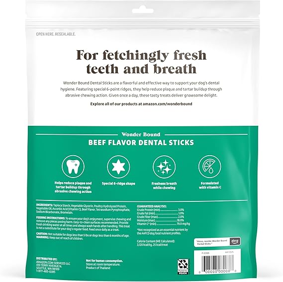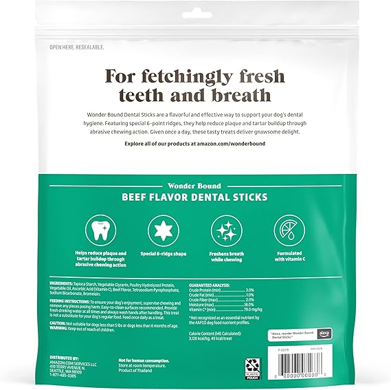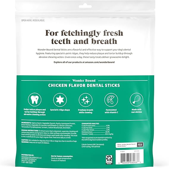 Amazon Brand - Wonder Bound Chicken Flavor Dental Sticks for Large Dogs (Over 30 lbs), 6-Ridge Shape for Plaque & Tartar Control, Freshens Breath, Made With Real Chicken, 40 Count (Pack of 1)