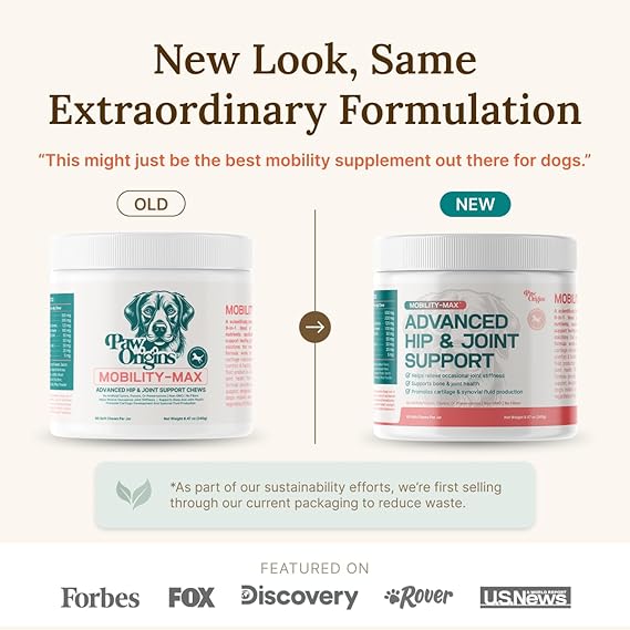 Paw Origins Mobility Max Joint Supplement for Dogs - 9-in-1 Blend with Glucosamine, Chondroitin, MSM & Vitamin C - Natural Bacon Flavor - Premium USA-Made Daily Formula for Active & Senior Pets