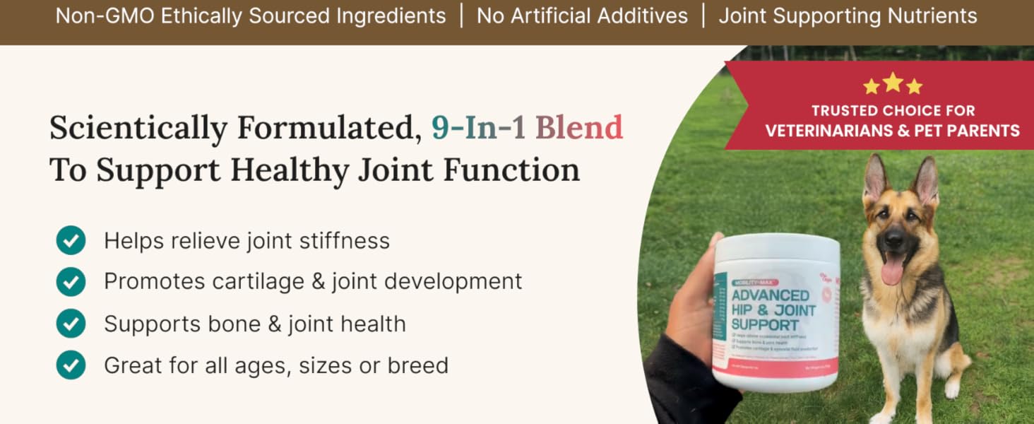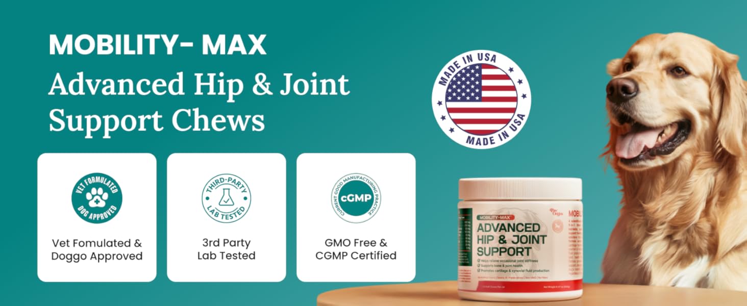 - Made in the USA - Each dog hip and joint supplement chew is produced in the United States in facilities that follow strict manufacturing standards for dependable quality and consistency