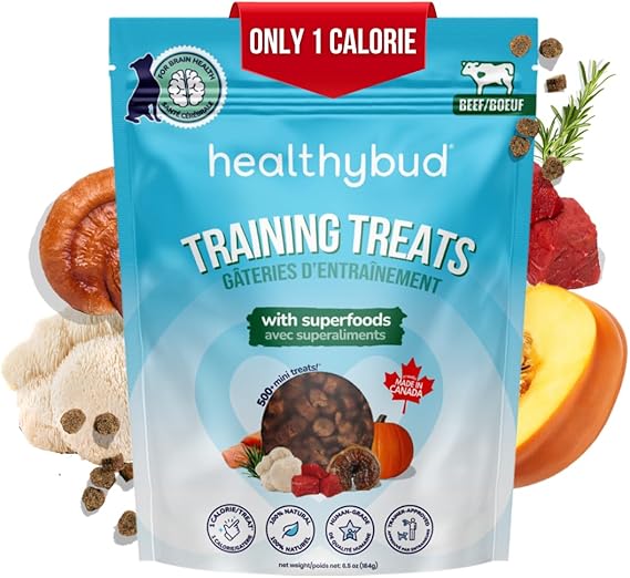 - HUMAN-GRADE, NATURAL SUPERFOODS - healthybud’s low-calorie treats are packed with amazing superfood ingredients like Lion’s Mane, Reishi and Salmon Oil to support brain health, bringing taste, nutrition & function into one perfect bite. Great for all small, medium, and large breeds
